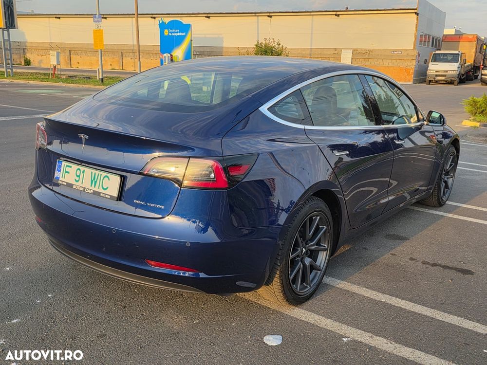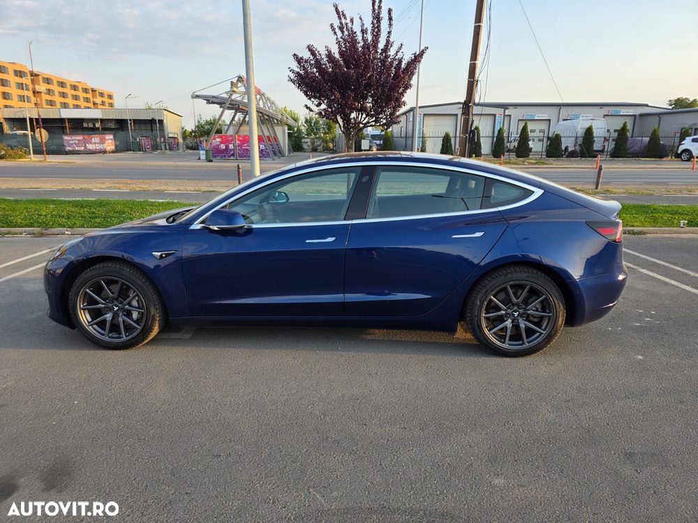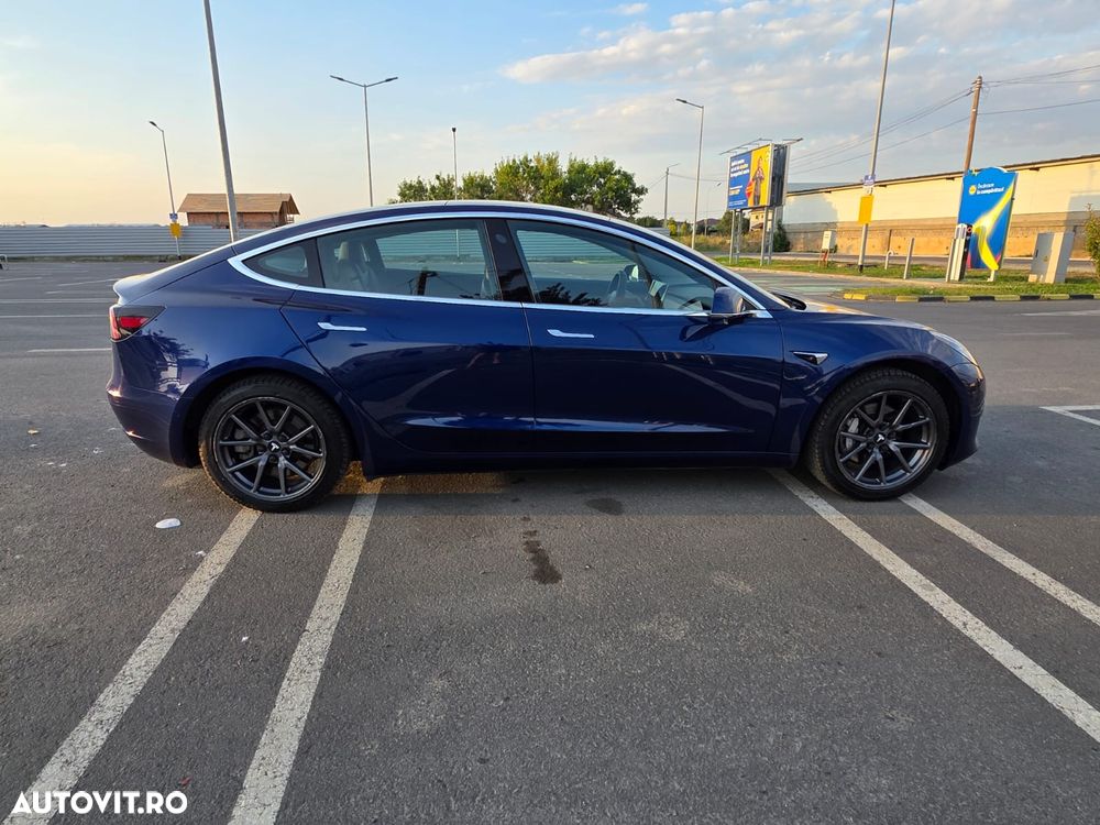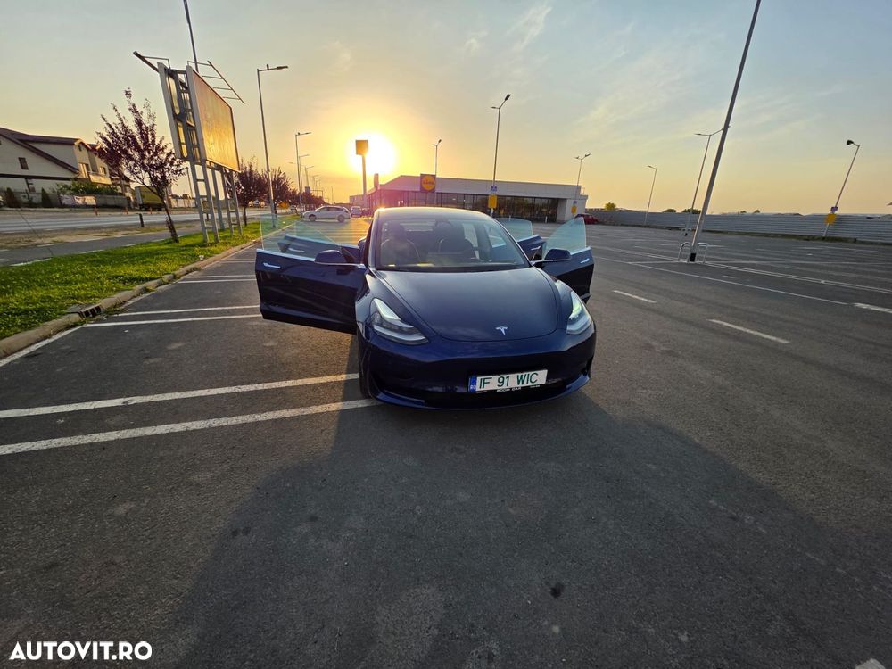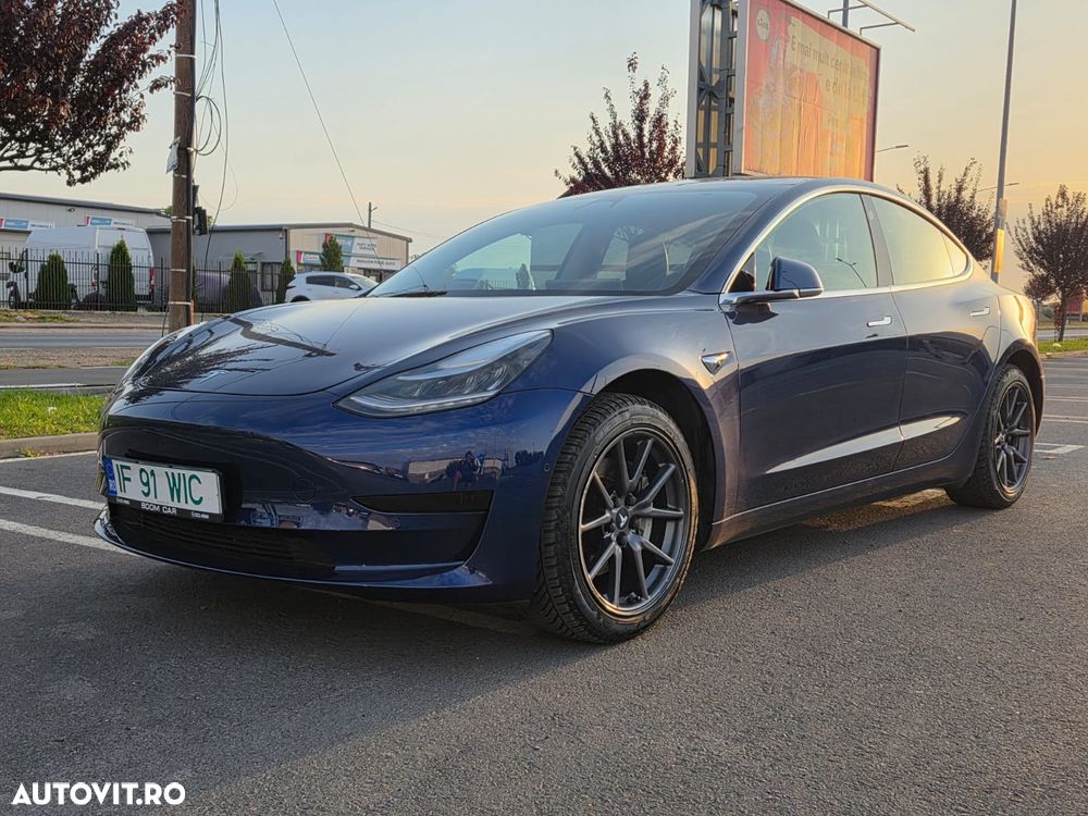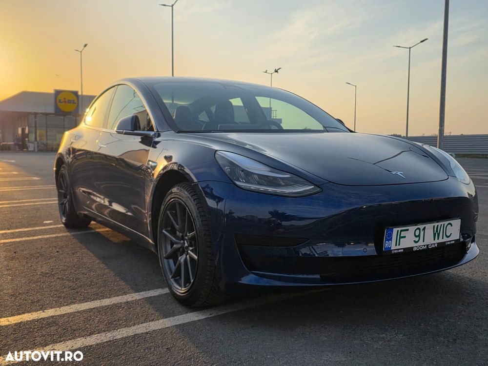 Tesla Model 3 Standard Range Plus, fabricată în august 2019, culoare Deep Blue Metallic, interior Negru Premium, în stare excelentă — atât estetic, cât și tehnic.