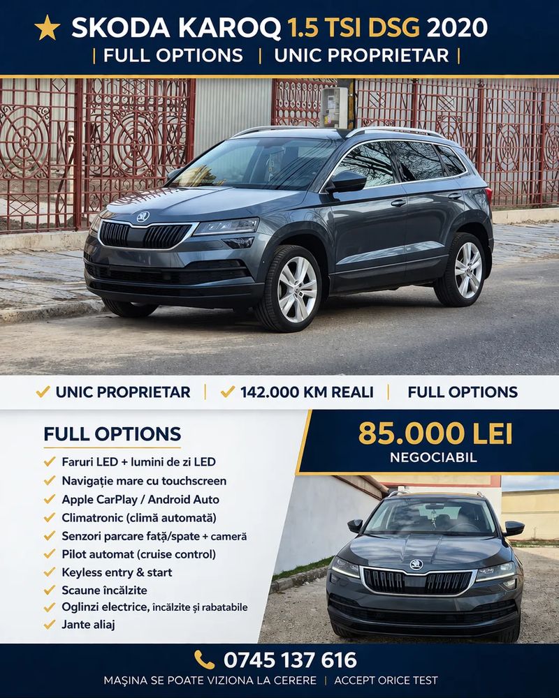 1498 cm3 • 150 CP • Skoda Karoq 1.5 TSI DSG
