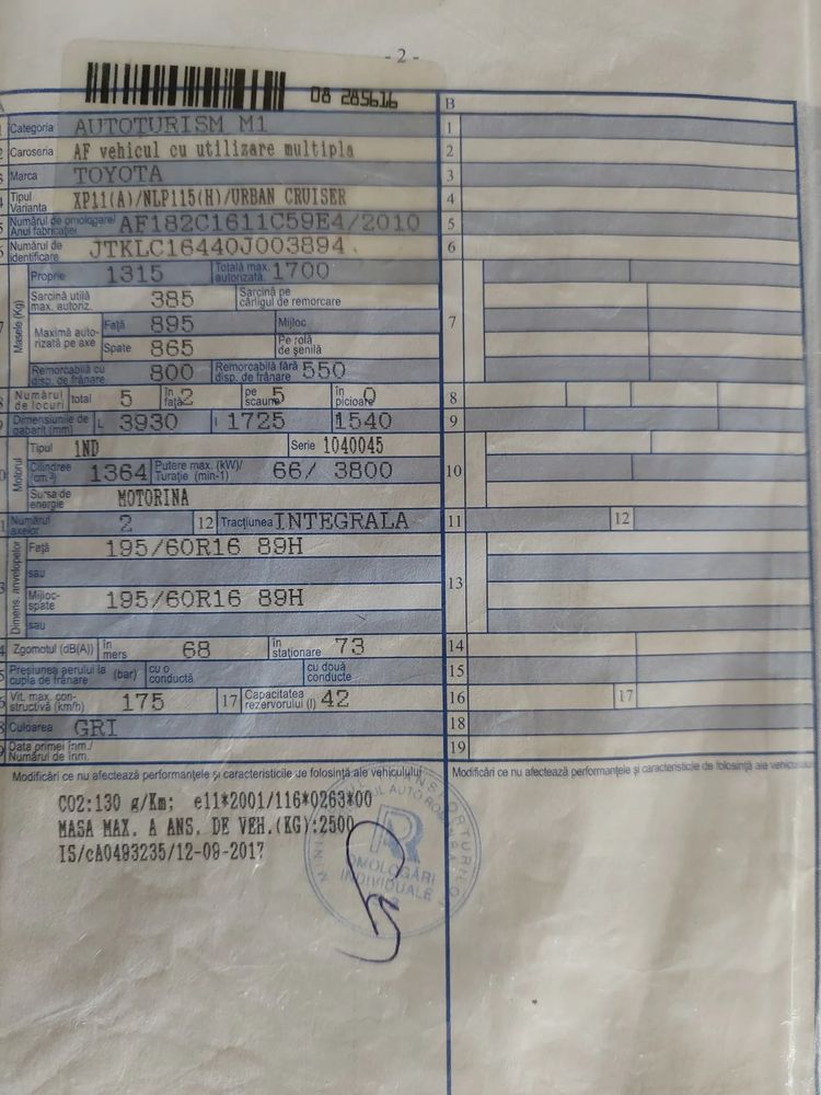 Fara accident in istoric, are VIN, avariat