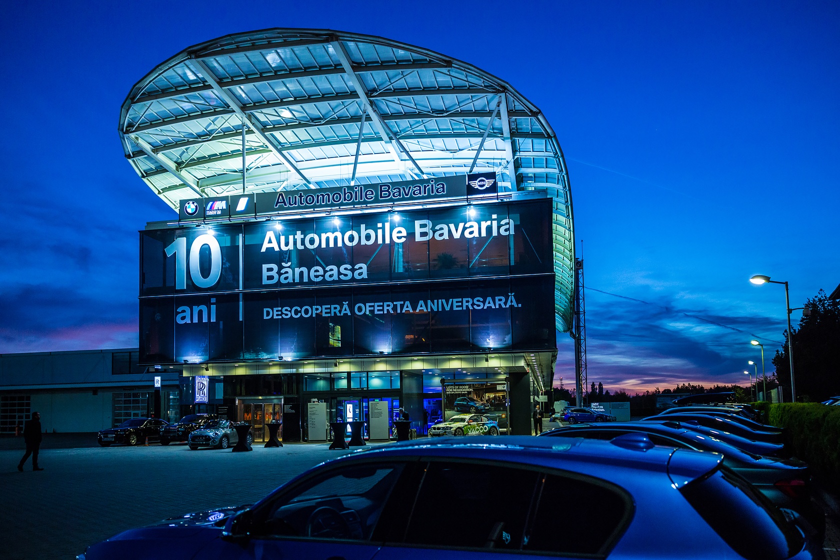 Cel mai mare showroom BMW din Europa de sud-est, Automobile Bavaria Băneasa, a împlinit 10 ani de existență. Pentru a celebra cum se cuvine momentul, dealerul a organizat un eveniment unde au fost prezente mai multe modele cu adevărat speciale. Datorită faptului că deține singura unitate de service din regiune autorizată să repare și să întrețină automobilele mărcii Rolls-Royce, Automobile Bavaria a prezentat în cadrul evenimentului, în premieră națională, cel mai luxos model decapotabil al mărcii – Rolls-Royce Dawn.