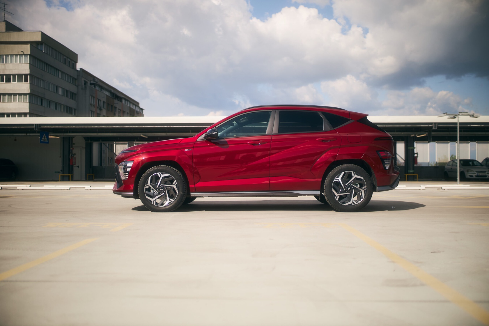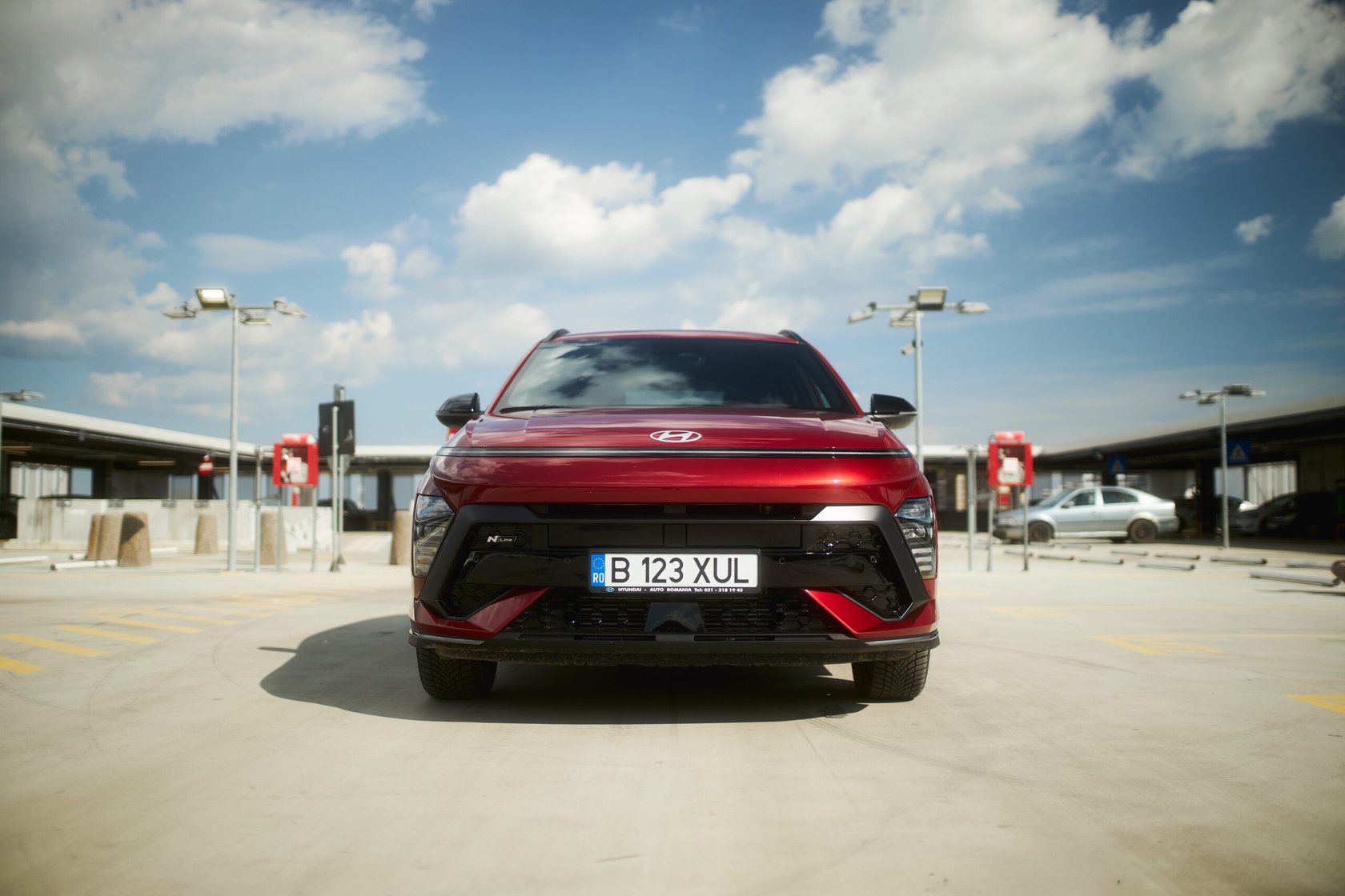 Deși poartă numele N-Line, suspensia este identică cu cea de pe varianta standard, orientată clar spre confort. Cu o gardă la sol de 17 cm și o masă de 1,4 tone, Kona absoarbe eficient denivelările și este ideală pentru traficul urban aglomerat sau drumurile mai puțin prietenoase din orașe ca București.