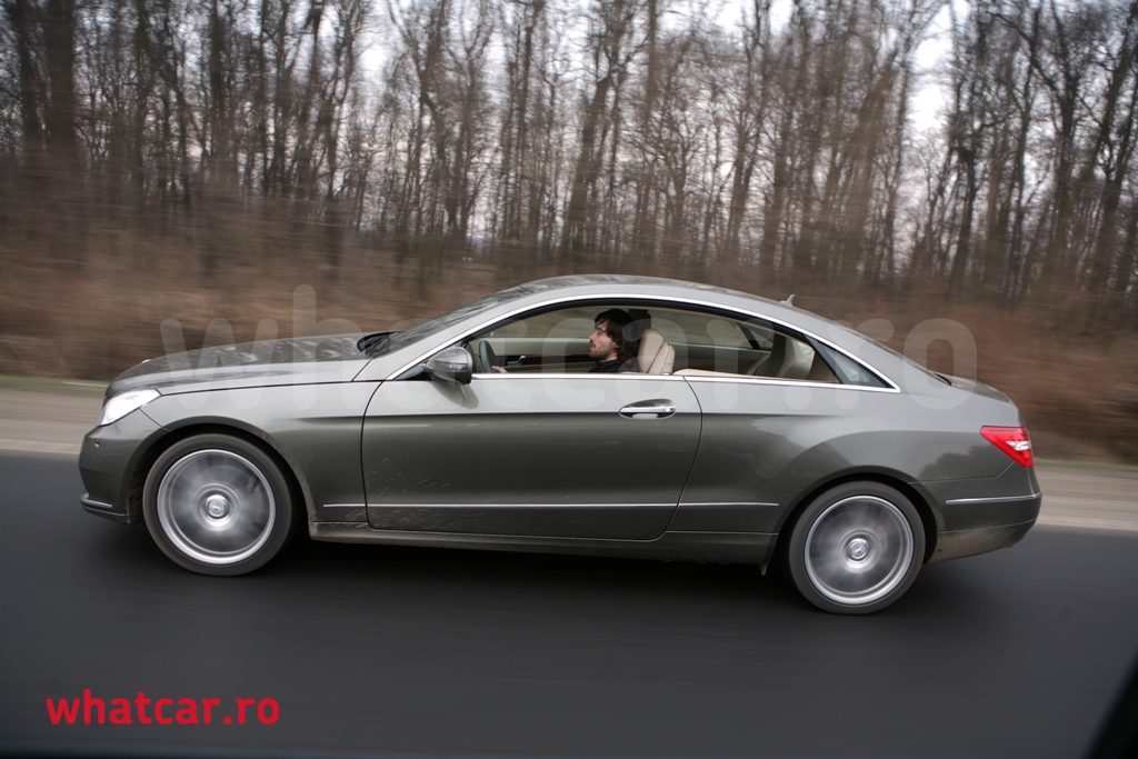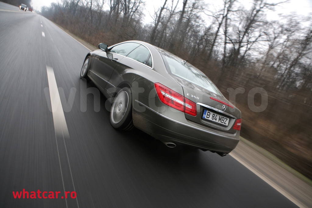 Da, cu acesta masina, cu acesta cutie si cu acest motor poti accelera in treapta a III-a de la 30 km/h (1.200 rpm) pana la 140 km/h. Si cel mai frumos lucru ca masina nu pare sa depuna nici cel mai mic efort pentru asta. Iar felul in care E350 Coupe poate sta pe viraje este la fel de uimitor, si asta pentru ca nu te vei da jos cu dureri de spate. Felul in care suspensia fost gandita, sa realizeze acel compromis perfect intre confort si stabilitate pe viraje, este la fel de impresionant.