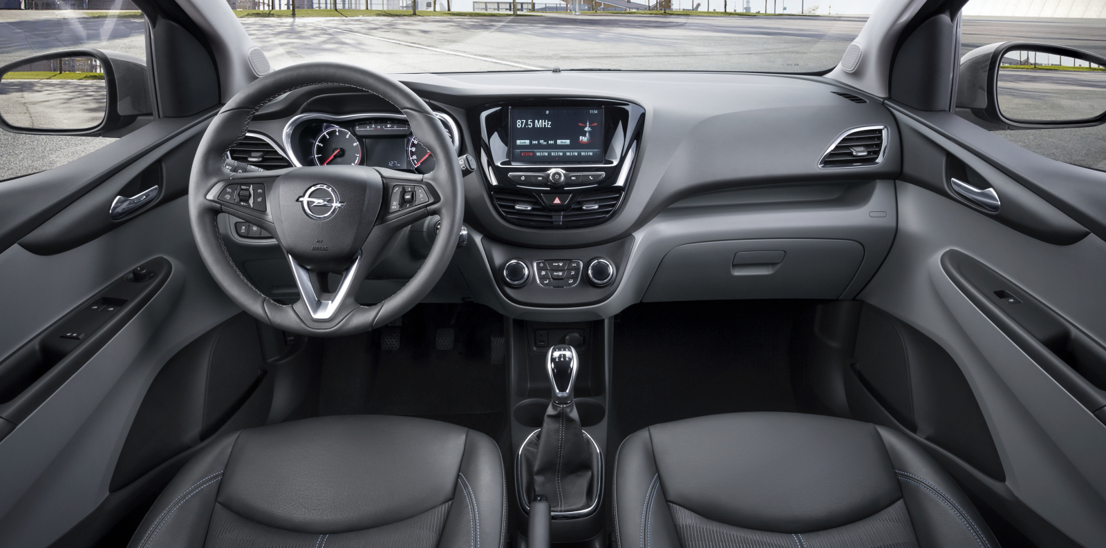 La interior, designerii Opel au mizat pe un habitaclu aerisit și spațios. Nu sunt foarte multe butoane, iar piesa de rezistență este display-ul sistemului de infoteinment IntelliLink amplasat în partea de sus a consolei centrale. Noul model Karl nu va duce lipsă nici de sisteme de asistare fiind oferit cu ABS și ESP, dar și asistare la porrnirea din rampă. Se mai poate comanda și sistem de avertizare la părăsirea accidentală a benzii de rulare. Karl va avea și un mod City pentru direcție, care va face ca volanul să fie mai ușor de manevrat la manevrele de parcare, de exemplu. Versiunile mai bine echipate vor beneficia și de scaune încălzite, volan încălzit și trapă panoramică.