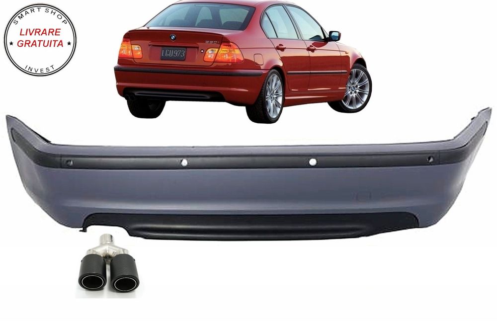 Bara Spate cu Toba Ornament Evacuare Fibra Carbon Mat BMW Seria 3 E46 4D Sedan (19- livrare gratuita