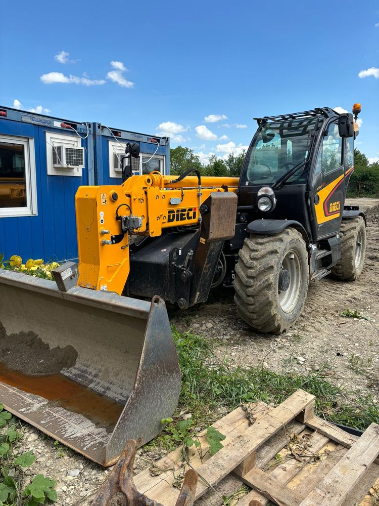 Incarcator telescopic dotat cu lame paleți și cupa constructii