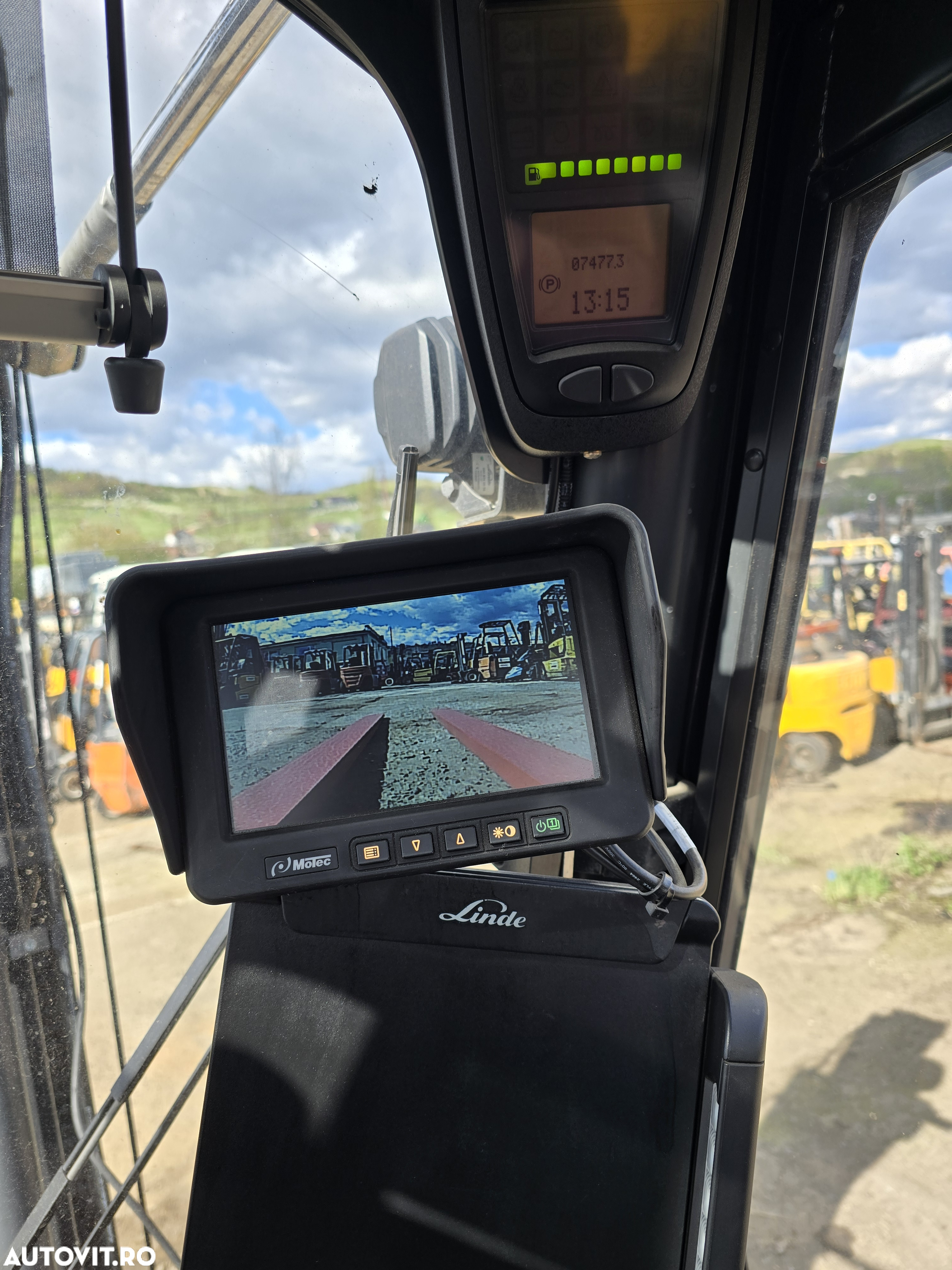 Camera video poziționată între lame cu monitor în interiorul stivuitorului